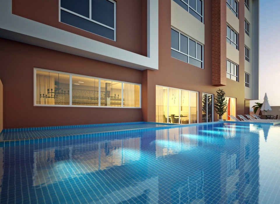 - Duas piscinas (adulto e infantil) com deck de madeira